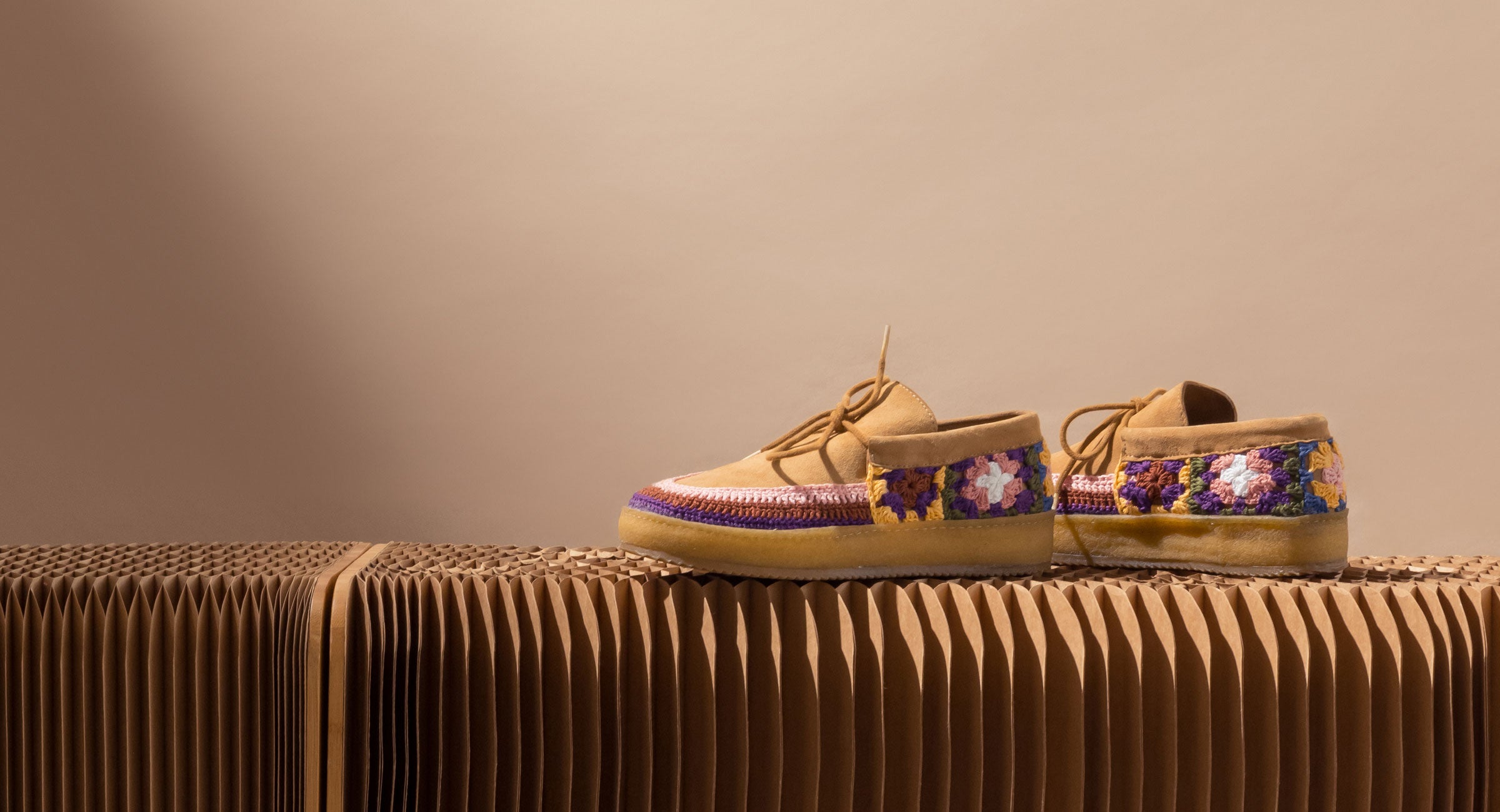 Setsu Platform Crochet Ankle Boot Saffron Suede Natural