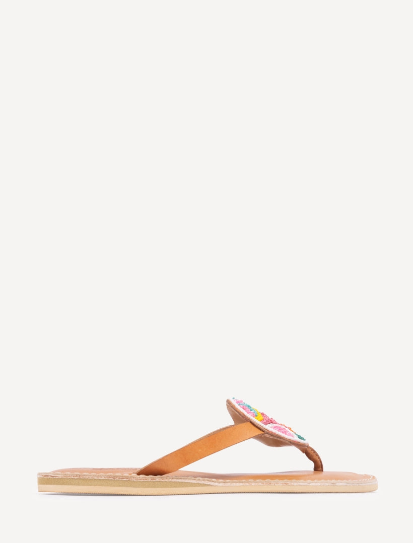 Hand-Beaded Flat Leather Sandals