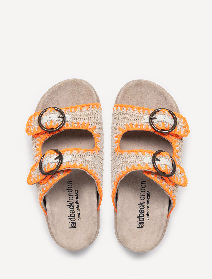 Clay Handwoven Crochet Double-Buckle Sandals Orange