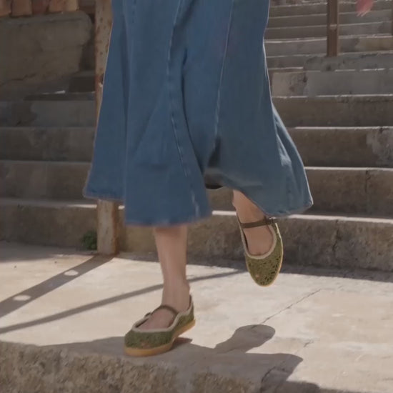 A modern take on tradition, these hand-crocheted Mary Jane flats blend craftsmanship with everyday comfort. Made with breathable cotton thread, an adjustable leather strap, and a soft crepe-wrapped midsole, they’re designed for effortless wear. The cushioned insole adds all-day comfort, while the branded rubberised outsole ensures durability and grip. Handmade, timeless, and effortlessly stylish. Perfect for laid-back days.