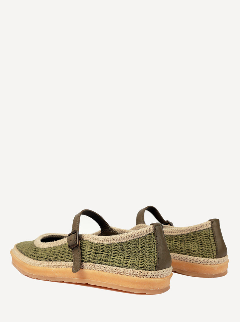 Loom Hand-Crocheted Mary Jane Flats Khaki Natural