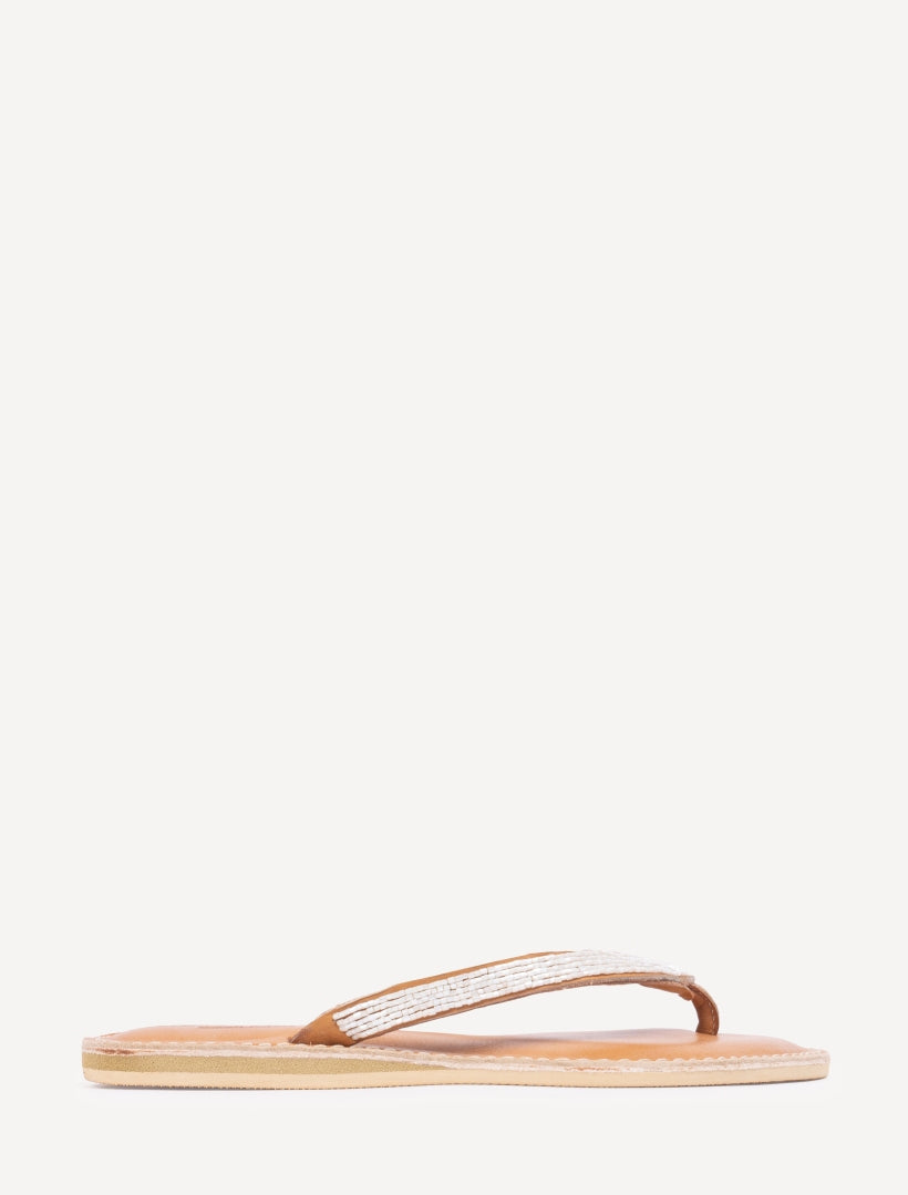 Hand-Beaded Flat Leather Sandals