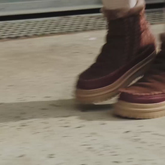 Setsu 4.0 reimagines our signature ankle boot with soft suede, bold detailing, and a modern chunky sole. Artisan-crafted with hand crochet accents or embroidered floral motifs, each style is finished with plush shearling for warmth and comfort. The lightweight rubber outsole adds flexibility and grip, perfect for colder days on the move.