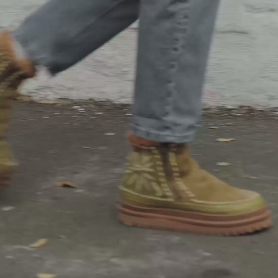 Setsu 4.0 reimagines our signature ankle boot with soft suede, bold detailing, and a modern chunky sole. Artisan-crafted with hand crochet accents or embroidered floral motifs, each style is finished with plush shearling for warmth and comfort. The lightweight rubber outsole adds flexibility and grip, perfect for colder days on the move.