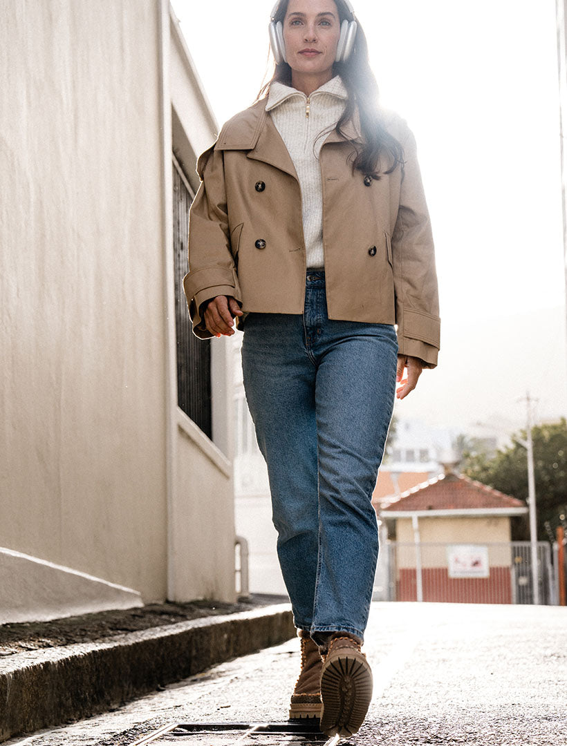 The Setsu 4.0 in Taupe Suede with Peach stitching brings a fresh twist to our iconic ankle boot – crafted in soft goat suede and finished with embroidered floral accents for artisan texture and warmth.