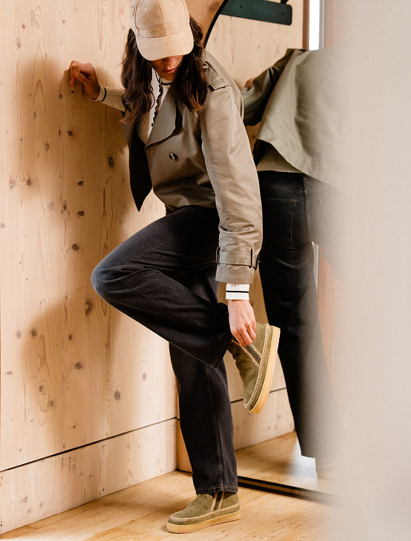 Wrap your feet in comfort and craft with the Setsu Crochet Ankle Boot. This signature style is defined by its double front zip and distinctive hand-crocheted stitching – a nod to laidback london’s dedication to slow, considered design. The soft suede upper and plush shearling lining create a snug, sock-like fit, while the natural gum rubber sole ensures grip and durability for everyday wear.