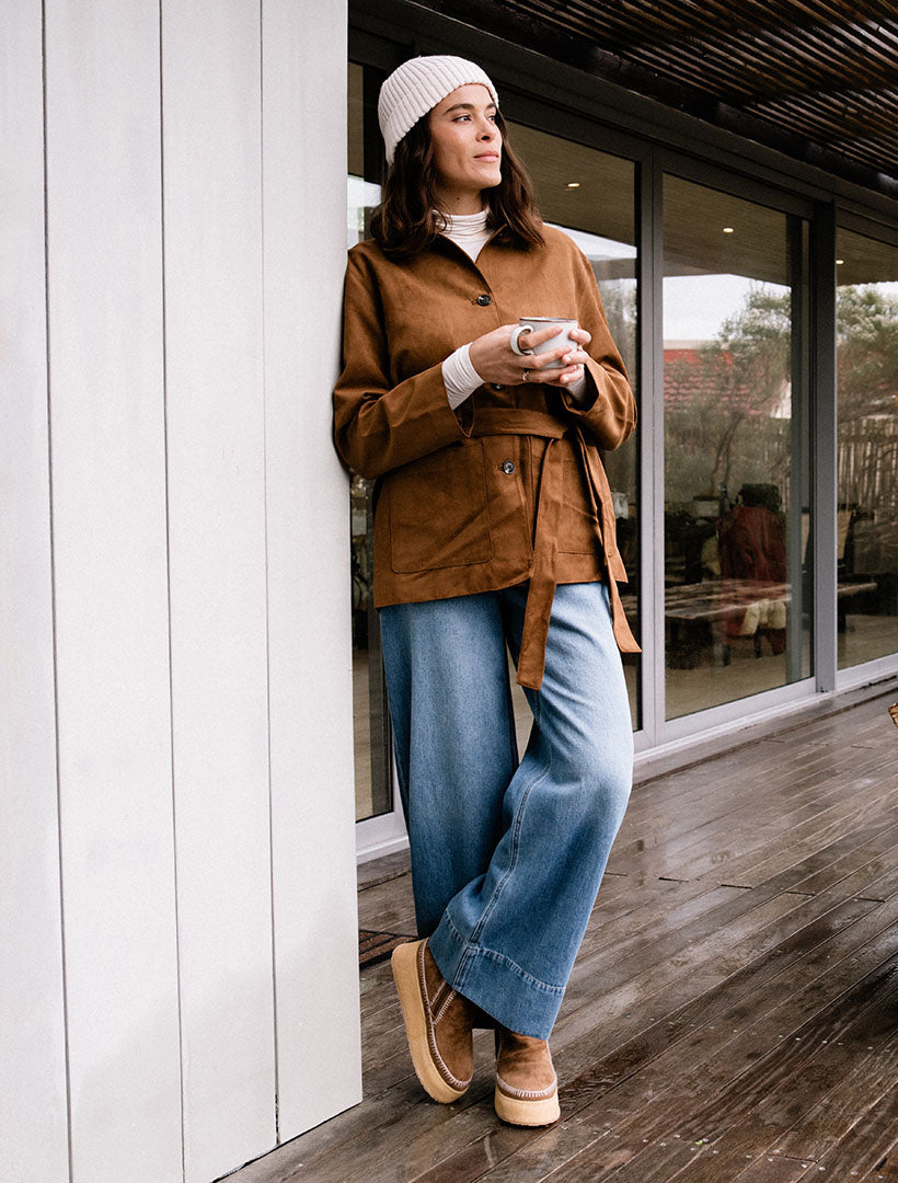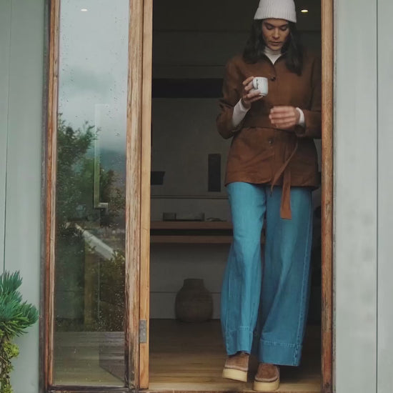 A fresh take on a laidback icon, the Setsu Platform adds height without compromising comfort. Handcrafted in soft goat suede with hand-crocheted stitching, this elevated style is fully lined in cosy shearling and grounded with a sculpted crepe-blend outsole. Designed to lift your look and keep you grounded wherever the day takes you.